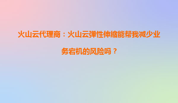 2025-10-02火山云代理商:火山云弹性伸缩能帮我减少业务宕机的风险吗? 一、业务宕机风险与弹性伸缩的关系 在数字化时代,业务连续性是企业运营的核心需求之一。宕机不仅会导致直接的经济损失,还...