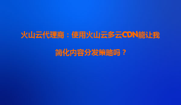 2025-09-29火山云代理商:使用火山云多云CDN如何简化您的内容分发策略? 一、内容分发的挑战与多云CDN的崛起 在数字经济时代,快速、稳定的内容分发已成为企业在线业务成功的关键因素。然而,传统单一C...