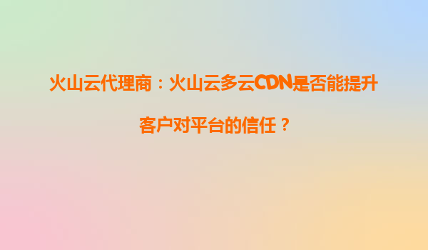 2025-09-29火山云代理商:火山云多云CDN如何提升客户对平台的信任 在当今的数字化时代,内容分发网络(CDN)已成为企业提升用户体验、确保业务稳定的关键基础设施。火山引擎作为字节跳动旗下的云服务品牌,凭借...