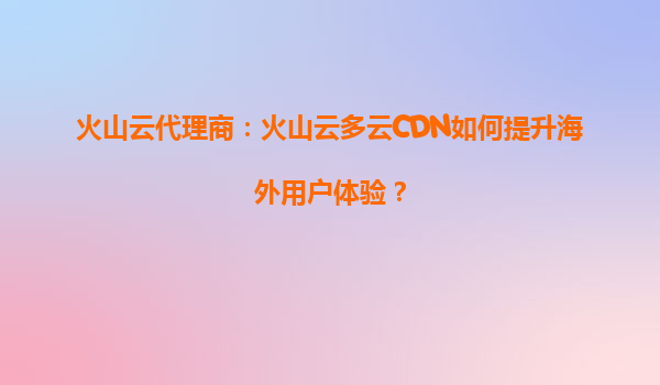 2025-09-29火山云代理商:火山云多云CDN如何提升海外用户体验? 一、海外用户体验的挑战 随着全球化趋势的加速,越来越多的企业开始拓展海外市场。然而,全球范围内的网络环境复杂多样,海外用户在访问企业...