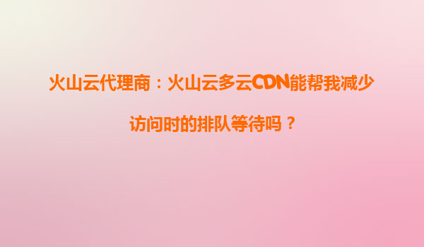 火山云代理商:火山云多云CDN能帮我减少访问时的排队等待吗? 一、什么是火山云多云CDN? 火山云多云CDN(内容分发网络)是火山引擎推出的一项基于分布式节点的加速服务,通过将内容缓存至全球多...