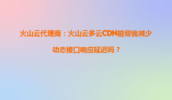 2025-09-29火山云代理商:火山云多云CDN能帮我减少动态接口响应延迟吗? 一、动态接口延迟的挑战与多云CDN的解决方案 动态接口响应延迟是许多应用开发者面临的常见问题,尤其在跨地域访问或高并发场景下更为明显。传...