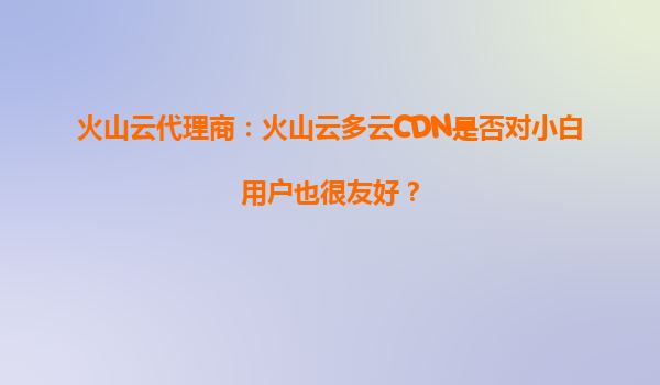 2025-09-29火山云代理商:火山云多云CDN是否更适合快速上线的场景? 引言 在数字化时代,快速上线和稳定运行是企业业务成功的关键。尤其是对于需要全球分发内容的业务,CD...