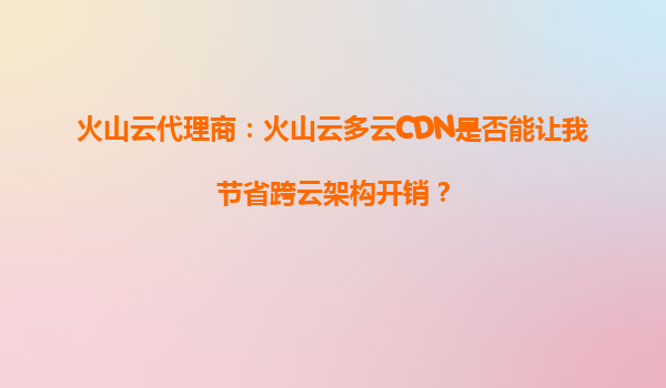 2025-09-29火山云代理商:我能否通过火山云多云CDN简化架构设计? 一、多云CDN如何助力企业架构简化 在数字化浪潮中,企业业务常面临全球用户访问延迟、流量高峰不稳定、传统CDN供应商单一等问题。...