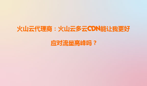2025-09-25火山云代理商:火山云多云CDN如何助力企业轻松应对流量高峰? 一、流量高峰的挑战与多云CDN的价值 在数字化时代,突发流量高峰已成为企业常态——无论是电商大促、热门活动直播,还是内...