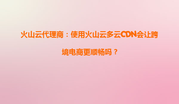 火山云代理商:使用火山云多云CDN会让跨境电商更顺畅吗? 随着全球跨境电商的蓬勃发展,企业对网络速度和稳定性的要求越来越高。尤其是在面对全球不同地区的用户时,如何确保快速、稳定的内容分发成为关键挑...