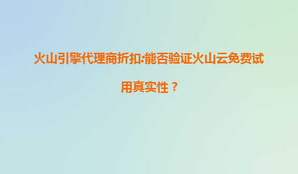 火山引擎代理商折扣:能否验证火山云免费试用真实性?