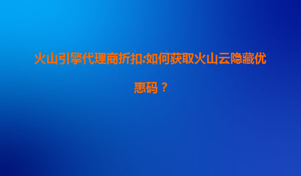 探索火山云代理商折扣:如何获取隐藏优惠码?