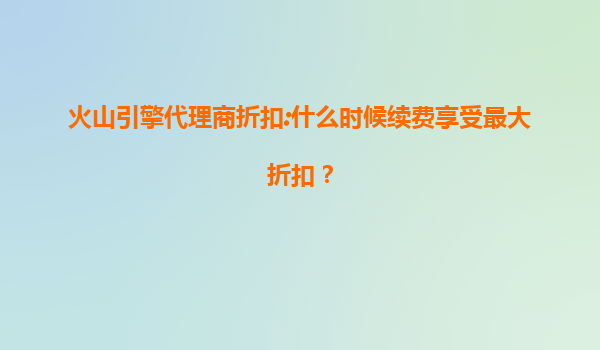 火山引擎代理商续费最大折扣时机及火山云优势解析