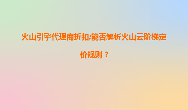 火山引擎代理商折扣与火山云阶梯定价规则解析