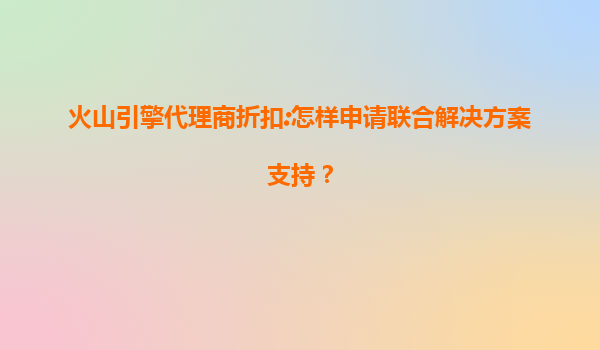 火山引擎代理商折扣:如何申请联合解决方案支持?