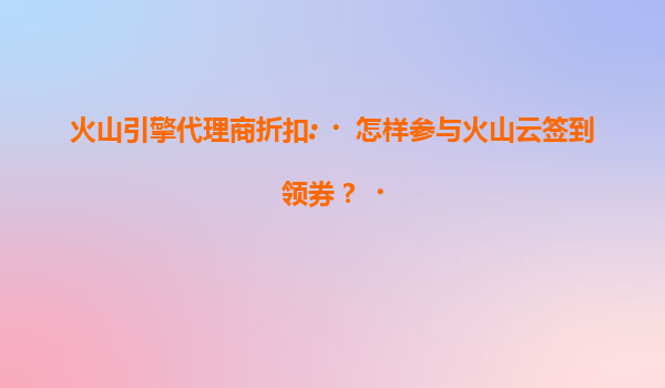 火山引擎代理商折扣:如何参与火山云签到领券?