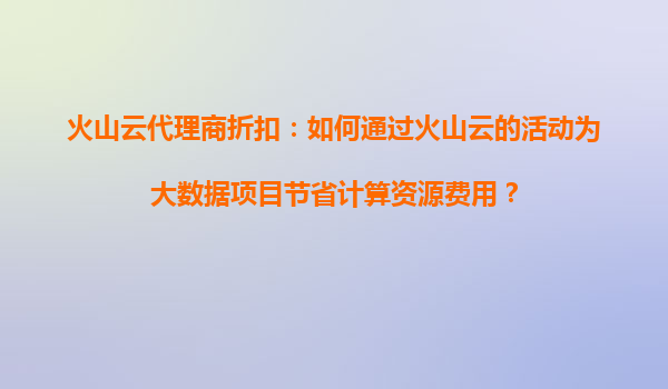 火山云代理商折扣:如何通过火山云的活动为大数据项目节省计算资源费用?
