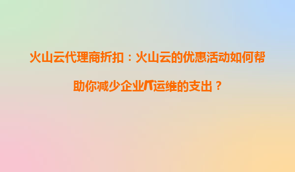 火山云代理商折扣:火山云的优惠活动如何帮助你减少企业IT运维的支出?