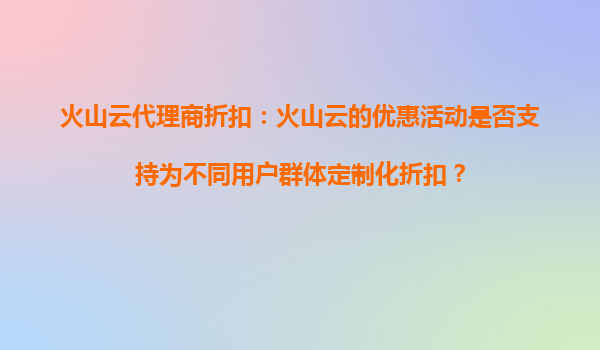 火山云代理商折扣:如何为不同用户群体提供定制化服务?