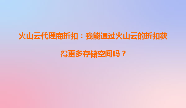 火山云代理商折扣:如何通过优惠获得更多存储空间?