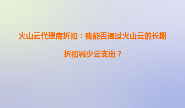 火山云代理商折扣:长期合作如何助力企业降本增效