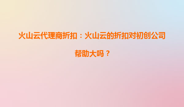 火山云代理商折扣:初创企业的“加速器”