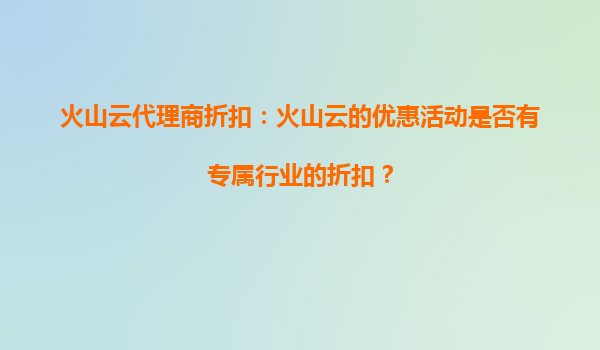 火山云代理商折扣:火山云的优惠活动是否有专属行业的折扣?