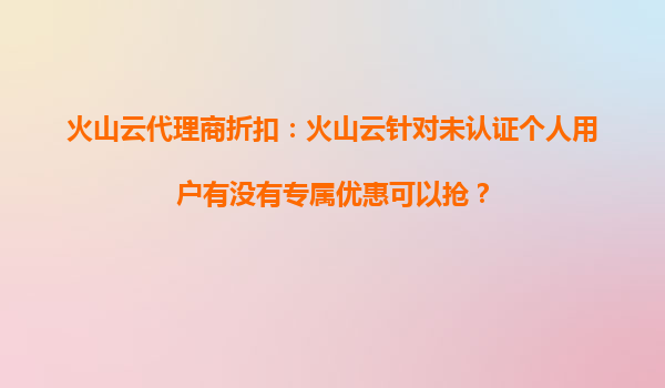 针对标题中的核心问题"火山云针对未认证个人用户有没有专属优惠",答案是肯定的。火山云作为国内领先的云计算服务商,为了拓展市场份额,会通过代理商体系推出阶梯式折扣政策。未认证的个人用户通常可以享受到:
