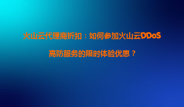 火山云联合代理商推出限时体验优惠活动,用户可通过代理商渠道以超低折扣体验DDoS高防服务。活动期间,新用户可享受首月50%费用减免,老用户续费或升级套餐可获得额外流量包赠送。具体参与方式需联系官方认证代理商获取专属优惠码。