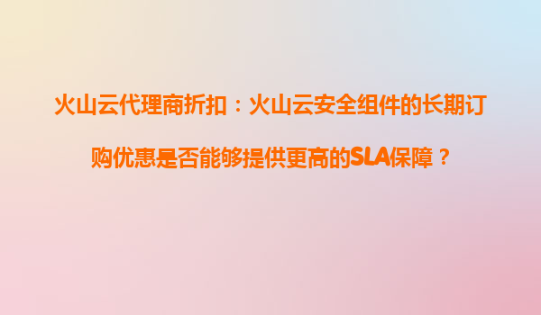 火山云代理商折扣:火山云安全组件的长期订购优惠能否提供更高SLA保障?