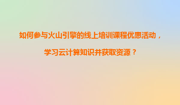 如何参与火山引擎线上培训课程优惠活动,高效学习云计算知识?