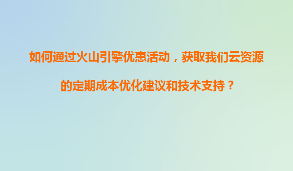 如何通过火山引擎优惠活动获取云资源成本优化建议与技术支持