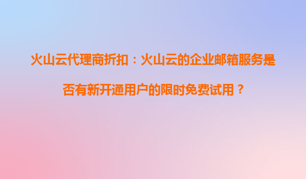 火山云代理商折扣:企业邮箱服务新用户限时免费试用政策解析 1.火山云企业邮箱服务的核心优势 火山云作为领先的云计算服务商,其企业邮箱解决方案凭借以下差异化优势赢得市场认可: 军事级安全防护:采用国密...