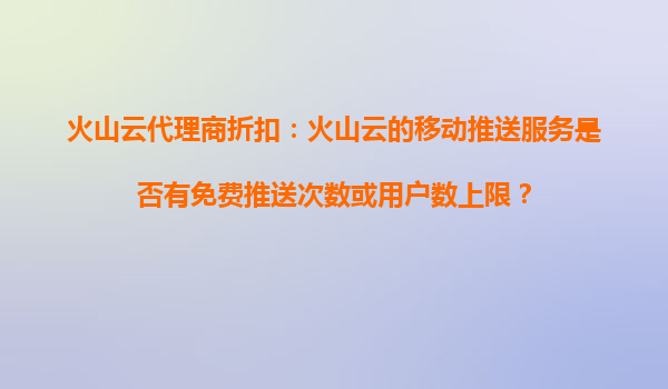 2025-10-31火山云代理商折扣:火山云的移动推送服务优势解析 一、火山云移动推送服务概述 火山云作为国内领先的云计算服务商,其移动推送服务(如消息推送、通知管理等)广泛应用于电商、社交、金融等行业。针对...
