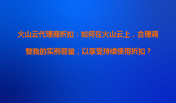 2025-10-31火山云代理商折扣:优化实例容量以获取持续使用折扣的策略 火山云作为领先的云计算服务提供商,为企业和开发者提供了高性能、高可靠性的云服务解决方案。通过合理的资源调整和优化,用户可以享受...
