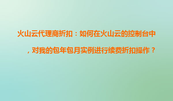 2025-10-31火山云代理商折扣:如何在控制台中对包年包月实例进行续费折扣操作 火山云的核心优势 在介绍续费折扣操作之前,首先了解火山云的几大核心优势,能帮助用户更好地理解其价...