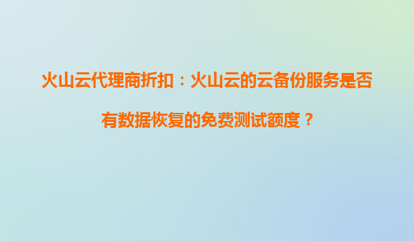 2025-10-31火山云代理商折扣:火山云的云备份服务数据恢复免费测试额度详解 一、火山云核心优势与云备份服务价值 火山云(VolcanoEngine)作为字节跳动旗下的云计算品牌,依托全球分布式数据中心、高性能存储架...