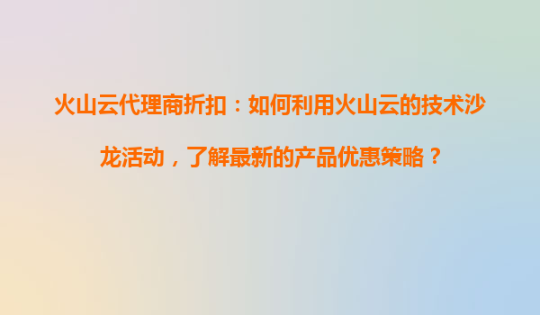2025-10-31火山云代理商折扣:如何利用火山云的技术沙龙活动,了解最新的产品优惠策略? 火山云代理商折扣的价值与意义 作为云计算领域的重要服务商,火山云凭借其稳定、高效、安全的云服务,吸引了众多企业用户和代理商的关...