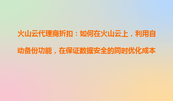 2025-10-31火山云代理商折扣:如何利用自动备份功能实现数据安全与成本优化 火山云自动备份功能的卓越性能 作为国内领先的云计算服务提供商,火山云提供了高度可靠的自动备份解决方案。其分布式存储架构设计可确保99.99999999...