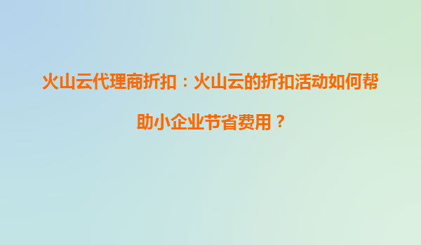 2025-09-16火山云代理商折扣:火山云折扣活动是否会对我的项目成本产生明显影响? 一、引言:云计算成本优化的重要性 在数字化转型的浪潮中,云计算已成为企业降本增效的...