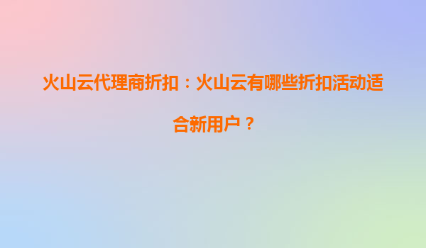 2025-09-16火山云代理商折扣:火山云优惠活动有哪些针对性的折扣方案? 一、火山云的核心优势与代理商价值 火山云作为字节跳动旗下的云计算服务品牌,依托全球分布式基础设施和AI技术能力,提供高...