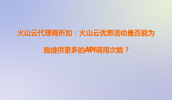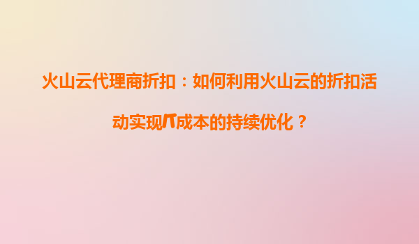 2025-09-16火山云代理商折扣:如何通过折扣活动助力云平台快速迭代 一、火山云折扣活动的核心价值 火山云作为领先的云计算服务提供商,其代理商折扣活动通过降低企业上云...