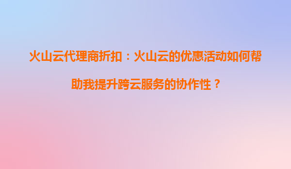 火山云代理商折扣:火山云的优惠活动如何提升跨云服务的协作性? 引言 随着企业数字化转型的加速,跨云服务和多云管理的需求日益增长。为了高效整合资源、降低成本并提升业务灵活性,越来越多的企业开始选...
