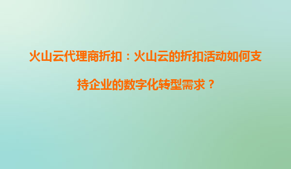 2025-09-16火山云代理商折扣:如何通过折扣活动助力企业数字化转型 数字化转型已成为企业提升竞争力的关键路径,而云计算服务是这一过程中的核心支撑。火山云作为领先的云服务提供商,通过代理商折...
