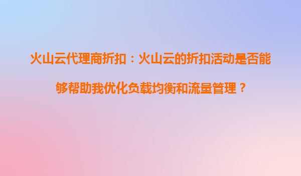 2025-09-06火山云代理商折扣:如何通过折扣活动优化负载均衡与流量管理? 一、火山云的负载均衡与流量管理能力 火山云作为领先的云计算服务提供商,其核心优势之一是通过灵活的基础设施帮助企业实现高...