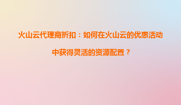 火山云代理商折扣:火山云折扣活动如何帮助简化应用部署和管理? 引言 在当今数字化时代,云计算已成为企业IT基础设施的核心组成部分。无论是初创公司还是大型企业,都希望通过云计算来提升效率、降低...