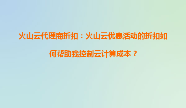 2025-09-16火山云代理商折扣:如何利用优惠活动有效降低云计算成本? 引言 在当今数字化时代,云计算已成为企业IT基础设施的核心组成部分。然而,随着业务规模的扩大,云计算成本也水涨船高。如何有效控制这部分支出...