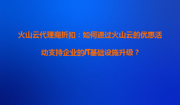 2025-09-06火山云代理商折扣:如何通过火山云的优惠活动支持企业的IT基础设施升级? 数字化时代的IT基础设施挑战 随着数字化转型的加速推进,企业对IT基础设施的需求日益增长。传统的IT架构面临着成本高、扩展性差、维护...