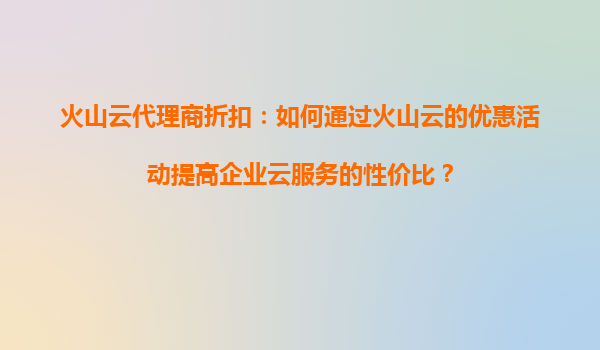 2025-09-16如何通过火山云代理商折扣提升企业云服务性价比 一、火山云的核心优势:技术实力与稳定保障 火山云作为字节跳动旗下的云计算品牌,依托全球领先的分布式架构和智能化运维体系,为用户提供...