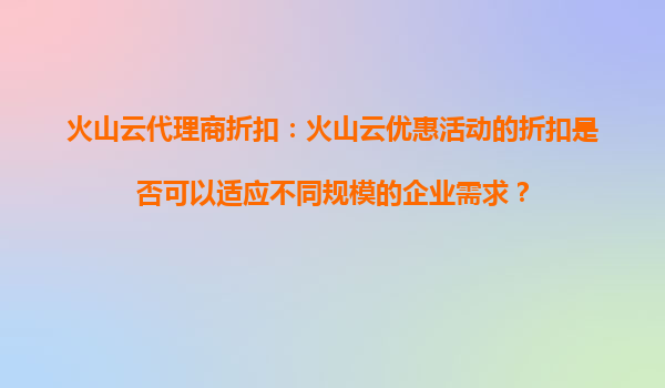 2025-09-06火山云代理商折扣:如何满足不同规模企业的个性化需求 一、企业上云的差异化需求 在数字化转型浪潮下,不同规模企业对云计算的需求呈现明显差异:初创企业重视成本控制,中型企业需要灵活扩展性,大型...
