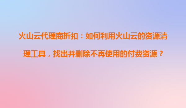 2025-10-31如何利用火山云的资源清理工具优化成本?——代理商折扣与资源管理全攻略 一、火山云资源清理的核心价值 随着企业上云进程加速,未及时清理的闲置资源可能导致3...