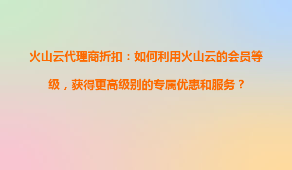 2025-10-31火山云代理商折扣:如何利用火山云的会员等级,获得更高级别的专属优惠和服务? 1.火山云会员等级体系介绍 火山云作为一家领先的云计算服务提供商,为代理商和客户提供了完善的会员等级体系。该...