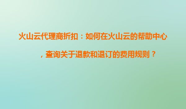 2025-10-31火山云代理商折扣:如何在火山云的帮助中心查询退款和退订费用规则 一、火山云的核心优势 火山云作为国内领先的云计算服务提供商,依托字节跳动的技术积累,为用户提供稳定、安全、高效的云服务解...
