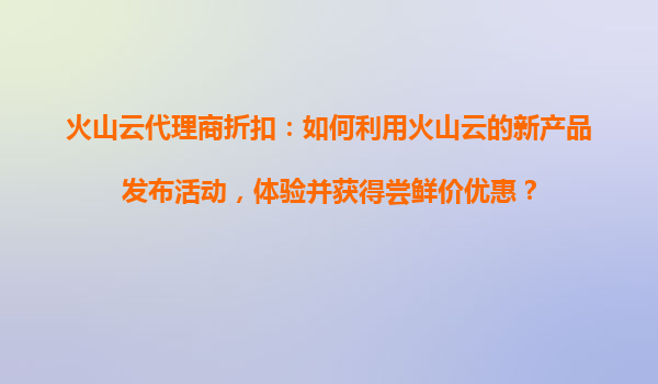 2025-10-30火山云代理商折扣:如何利用火山云的新产品发布活动,体验并获得尝鲜价优惠? 一、火山云及其代理商的核心优势 火山云作为领先的云计算服务提供商,凭借稳定的基础设施、弹性扩展能力及全球节...